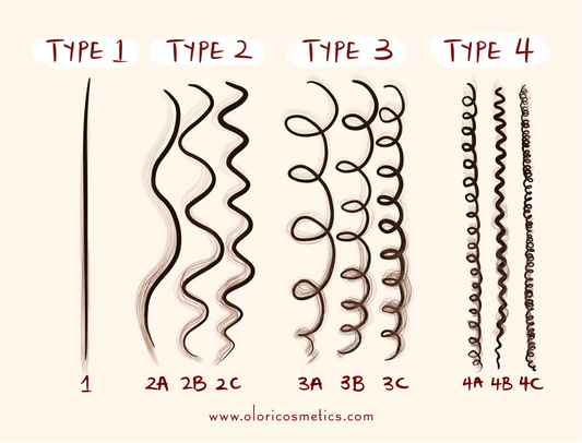Type 1 hair is generally pretty straight, type 2 hair tends to take on a wavy ‘S’ curl, type 3 hair is loopier and can be described as a ‘C’ curl. Finally, type 4 hair is identified by its distinct coils and strands whose direction changes sharply (as opposed to changing directions in a loop like type 3 hair). As a result, type 4 hair is sometimes described as a ‘Z’ curl.